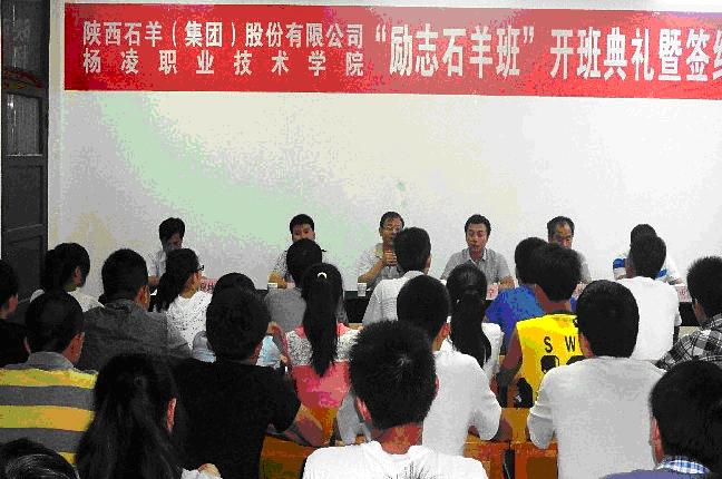 7月9日晚,石羊集團第二屆“勵志石羊班”開班及校企合作簽字儀式隆重舉行。楊凌職業(yè)技術學院動工學院黨總支書記王秉信、動物醫(yī)學教研室主任薛增迪,陜西石羊(集團)股份有限公司人力資源部總經理周博寧、農牧人力資源部經理袁丙雷,楊凌石羊財務經理王磊峰及30名訂單班學生參加了開班儀式。儀式由楊職院學工辦主任鄧留坤主持。