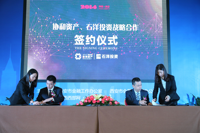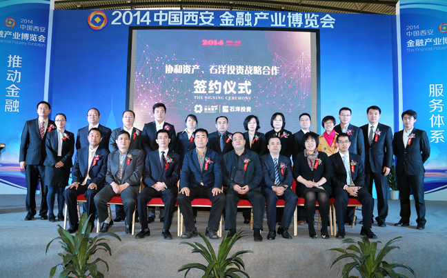 10月12日,陜西石洋投資管理有限公司(石洋投資)與陜西協(xié)和資產(chǎn)管理有限公司(協(xié)和資產(chǎn))戰(zhàn)略合作簽約儀式在“2014中國•西安金融產(chǎn)業(yè)博覽會(huì)”主會(huì)場(chǎng)曲江國際會(huì)展中心隆重舉行。石羊集團(tuán)董事長魏存成、協(xié)和控股董事長成建禮出席并見證簽約儀式,雙方其他領(lǐng)導(dǎo)和嘉賓共同參加了會(huì)議。