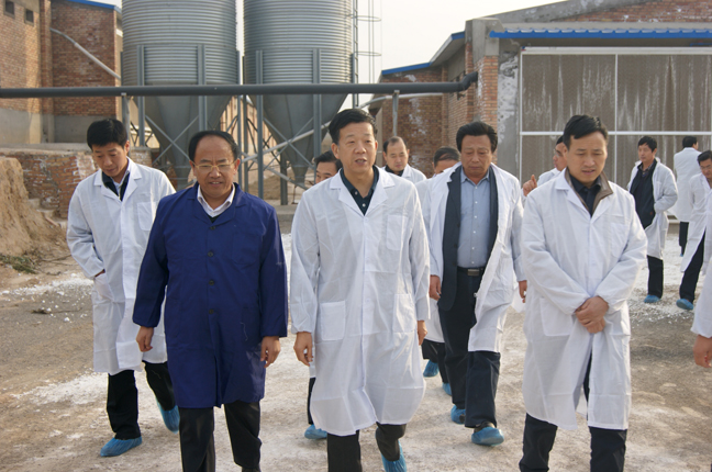 11月11日,由渭南市副市長吳蟒成帶隊,成員由各縣(市、區(qū))分管領(lǐng)導及畜牧(農(nóng)業(yè))局局長等一行50余人組成的全市建設陜西現(xiàn)代畜牧業(yè)示范區(qū)觀摩團現(xiàn)場觀摩石羊集團百萬只肉雞養(yǎng)殖示范園區(qū)建設情況,石羊集團副總裁韓春元、石羊集團肉雞事業(yè)部副總經(jīng)理何東力陪同觀摩。