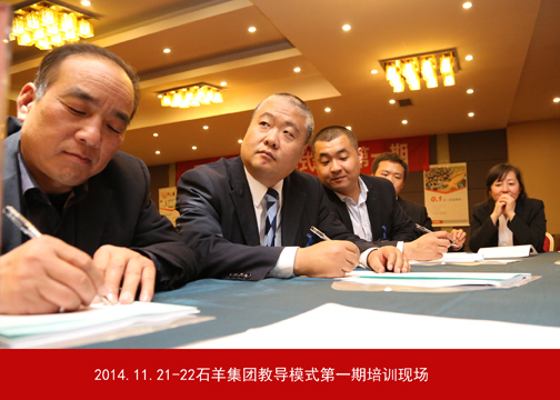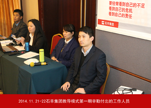 11月20日—22日,石羊集團(tuán)教導(dǎo)培訓(xùn)第一期在未央湖畔的度假酒店成功舉行。按集團(tuán)董事長(zhǎng)魏存成在2014年第三季度經(jīng)營(yíng)檢討會(huì)上的部署,本次活動(dòng)旨在向各事業(yè)部主管級(jí)以上人員傳達(dá)、推廣教導(dǎo)模式。此次培訓(xùn)得到了大量教導(dǎo)家人的支持,現(xiàn)場(chǎng)邀請(qǐng)到師道書院汪蓉老師,同時(shí)還感召到王亞妮、丘煒等企業(yè)家人作為教導(dǎo)員。此次培訓(xùn)學(xué)員分別來(lái)自匯邦地產(chǎn)、金融、農(nóng)牧、大食品及外部學(xué)員共計(jì)75人,培訓(xùn)導(dǎo)師、教導(dǎo)團(tuán)和小天使人員30余人。