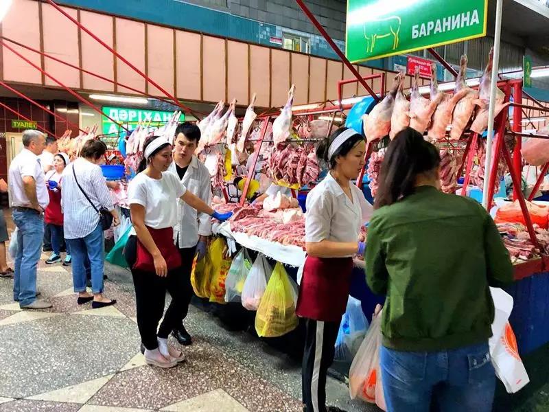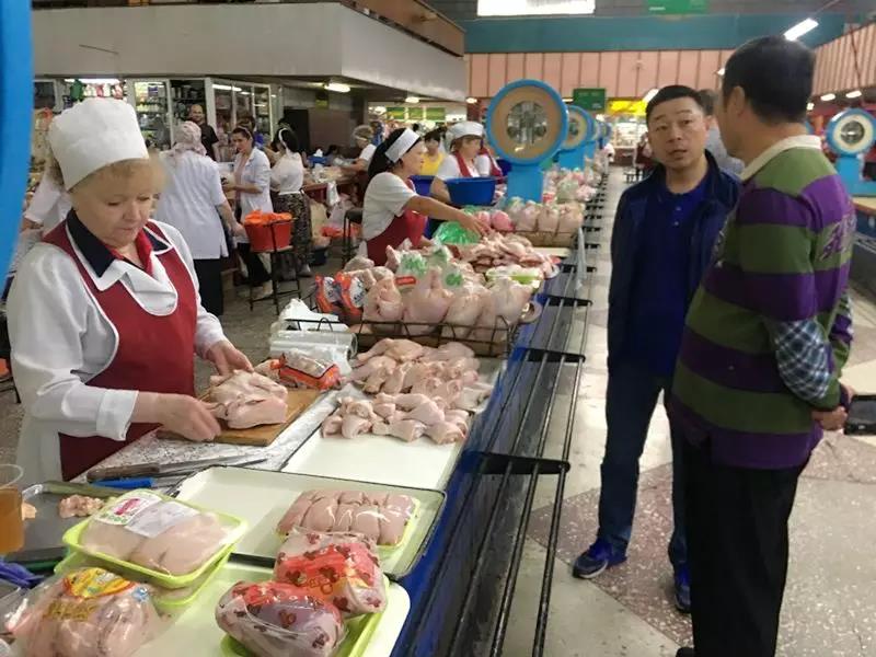 18日在哈國首都阿斯塔納市,魏總一行考察哈薩克斯坦當?shù)剞r(nóng)貿(mào)市場,了解哈國肉類、油脂類、蜂蜜等農(nóng)產(chǎn)品銷售和市場情況,研究哈國農(nóng)產(chǎn)品生產(chǎn)、包裝、物流、銷售等趨勢。