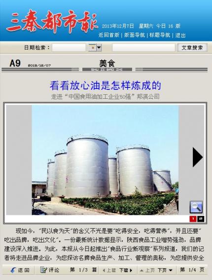現(xiàn)如今,"民以食為天"的含義不光是要"吃得安全,吃得營養(yǎng)",并且還要"吃出品牌,吃出文化"。一份最新統(tǒng)計(jì)數(shù)據(jù)顯示,陜西食品工業(yè)增勢強(qiáng)勁,品牌建設(shè)深入推進(jìn)。為此,本報(bào)從今日起推出"食品行業(yè)新觀察"系列報(bào)道,我們的記者將走進(jìn)品牌企業(yè),為您探訪名牌食品生產(chǎn)、加工、管理的奧秘,為您提供安全消費(fèi)、放心消費(fèi)、健康消費(fèi)、時(shí)尚消費(fèi)指南。今日首期推出來自西安邦淇制油科技有限公司和多美滋嬰幼兒食品有限公司的報(bào)道。