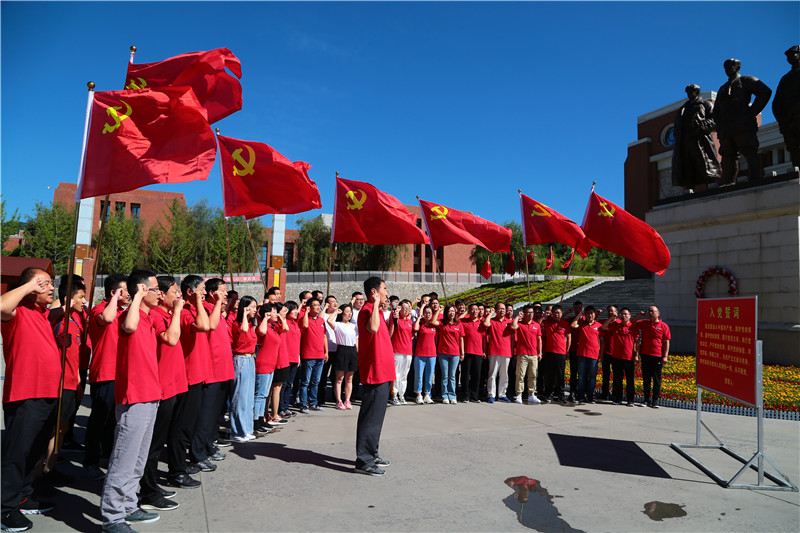 首先,全體參會(huì)人員來(lái)到照金廣場(chǎng)面對(duì)黨旗,莊嚴(yán)肅穆的重溫入黨誓詞。
