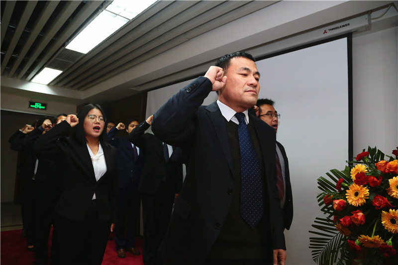 2020,總結(jié)過去是成績,迎接未來是目標。“我保證對企業(yè)的絕對忠誠,以飽滿的熱情投入到每一天的工作中……我將嚴格要求自己,用腳踏實地的行動、堅不可摧的信念,努力超越自我,全力以赴,不抱怨,不找借口,忠于目標,忠于企業(yè)……敢于吃苦,甘于奉獻,戮力同心,全力以赴,為全面完成2020年度各項目標任務(wù)而不懈奮斗!”誓詞響亮,誓言鏗鏘,這是石羊家人最真誠的內(nèi)心獨白,是石羊家人最給力的團隊表達。目標宣誓不只是儀式,更是對自我的一種激勵,它將會融入和貫徹到日常的崗位工作中,并將轉(zhuǎn)化為行動。