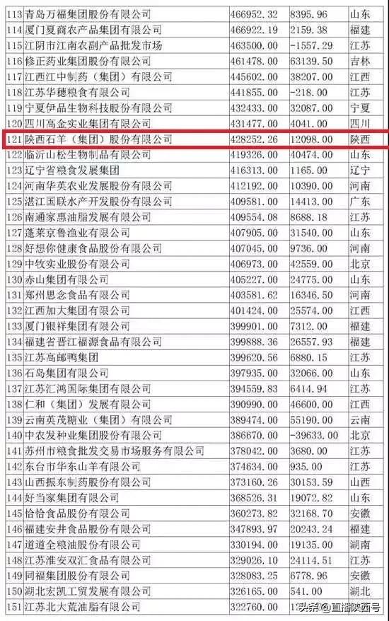 陜西上榜的七家企業(yè)中,陜西石羊集團(tuán)排名最高,位居第121位。