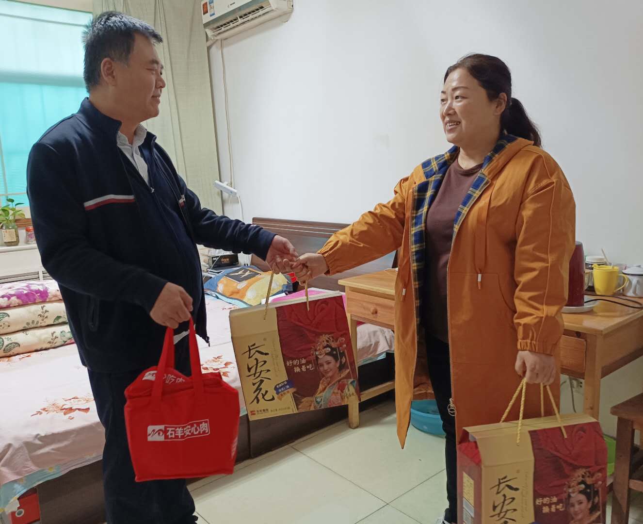 集團(tuán)工作人員來到臨潼、蒲城等地退休員工家中,向他們送上石羊安心肉和長安花菜籽油。工作人員詳細(xì)詢問了大家退休后的生活狀況并表示雖然大家退休了,但集團(tuán)依然關(guān)注著退休員工們,希望大家每天都過的充實(shí)而快樂、享受幸福的晚年生活。