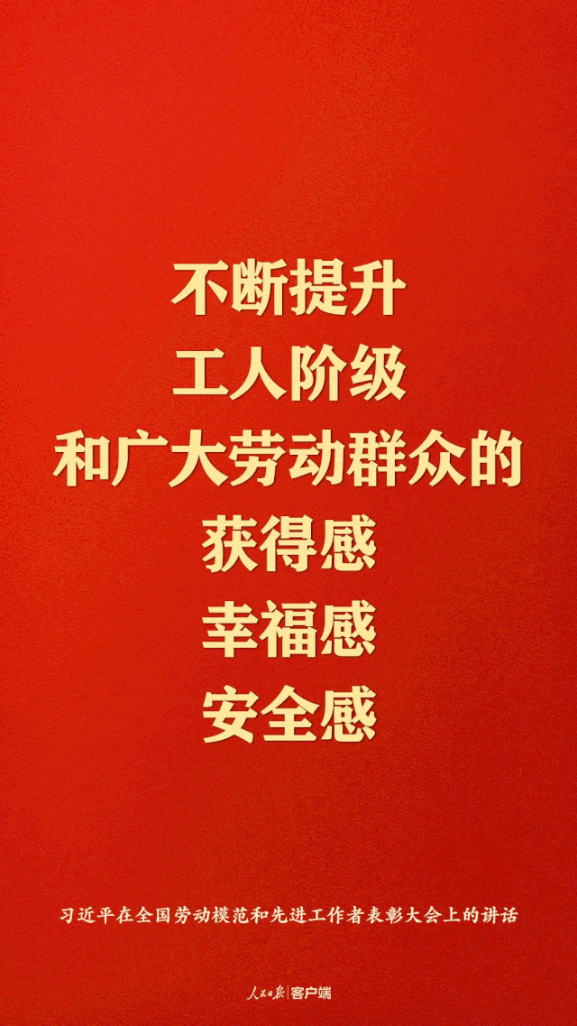 光榮屬于勞動者,幸福屬于勞動者。社會主義是干出來的,新時代是奮斗出來的。勞動模范是民族的精英、人民的楷模,是共和國的功臣。我國是人民當家作主的社會主義國家,黨和國家始終堅持全心全意依靠工人階級方針,始終高度重視工人階級和廣大勞動群眾在黨和國家事業(yè)發(fā)展中的重要地位,始終高度重視發(fā)揮勞動模范和先進工作者的重要作用。立足新發(fā)展階段,貫徹新發(fā)展理念,構建新發(fā)展格局,推動高質量發(fā)展,必須緊緊依靠工人階級和廣大勞動群眾。我國工人階級和廣大勞動群眾要更加緊密地團結在黨中央周圍,勤于創(chuàng)造、勇于奮斗,努力在全面建設社會主義現(xiàn)代化國家新征程上創(chuàng)造新的時代輝煌、鑄就新的歷史偉業(yè)。——習近平