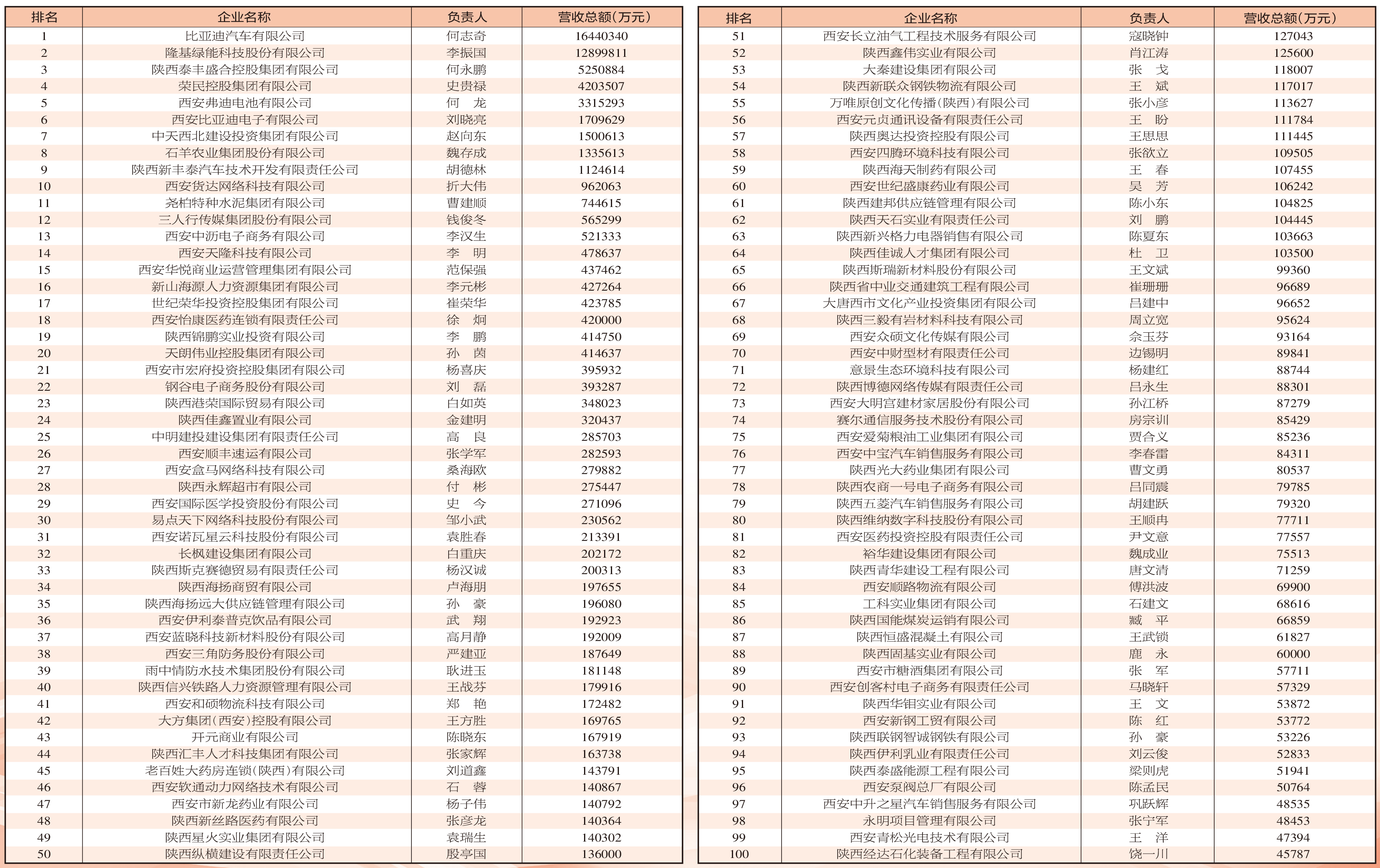 據(jù)介紹,2023西安民營企業(yè)100強評選工作是由西安市工商聯(lián)負(fù)責(zé),在尊重企業(yè)自主申報和各區(qū)縣、各開發(fā)區(qū),各行業(yè)異地商會推薦的基礎(chǔ)上,經(jīng)部門聯(lián)審、社會公示等程序,以2022年企業(yè)營業(yè)收入總額降序排列產(chǎn)生。從營業(yè)收入總額上看,百強民企2022年營業(yè)收入總額達(dá)6427.76億元,同比增長44.44%。有9家企業(yè)營業(yè)收入總額超過百億元。