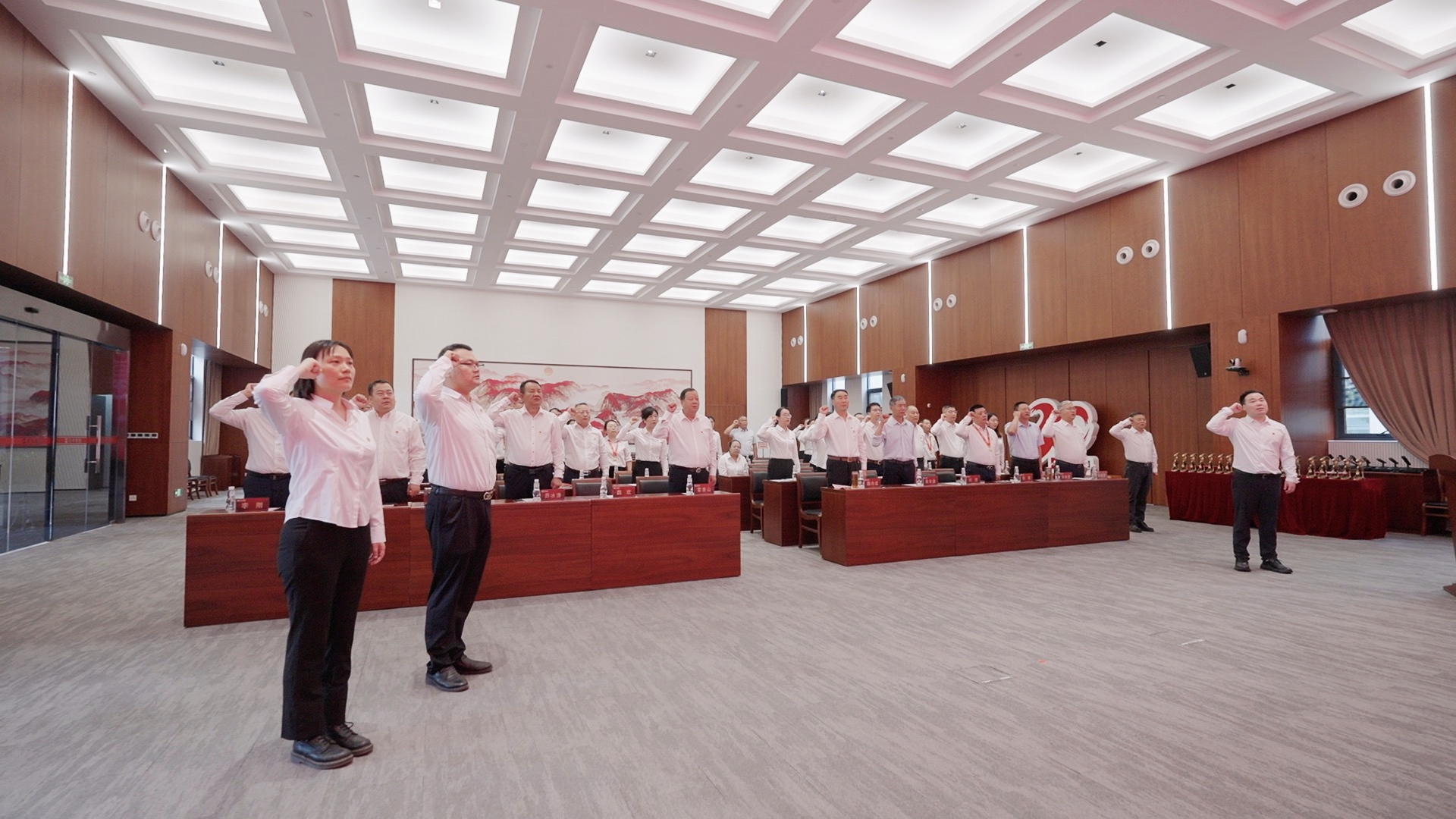 升旗儀式后,集團(tuán)總裁魏歡帶領(lǐng)2名新黨員及36名黨員代表面向黨旗莊嚴(yán)宣誓。“我志愿加入中國(guó)共產(chǎn)黨,擁護(hù)黨的綱領(lǐng)……”,字字千鈞的誓言響徹全場(chǎng),激蕩在每位黨員心間,激勵(lì)全體黨員在新時(shí)代新征程中奮勇?tīng)?zhēng)先。