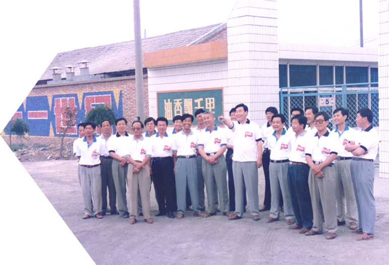 1994年,魏存成同志與創(chuàng)業(yè)初期的經(jīng)營(yíng)管理團(tuán)隊(duì)。
